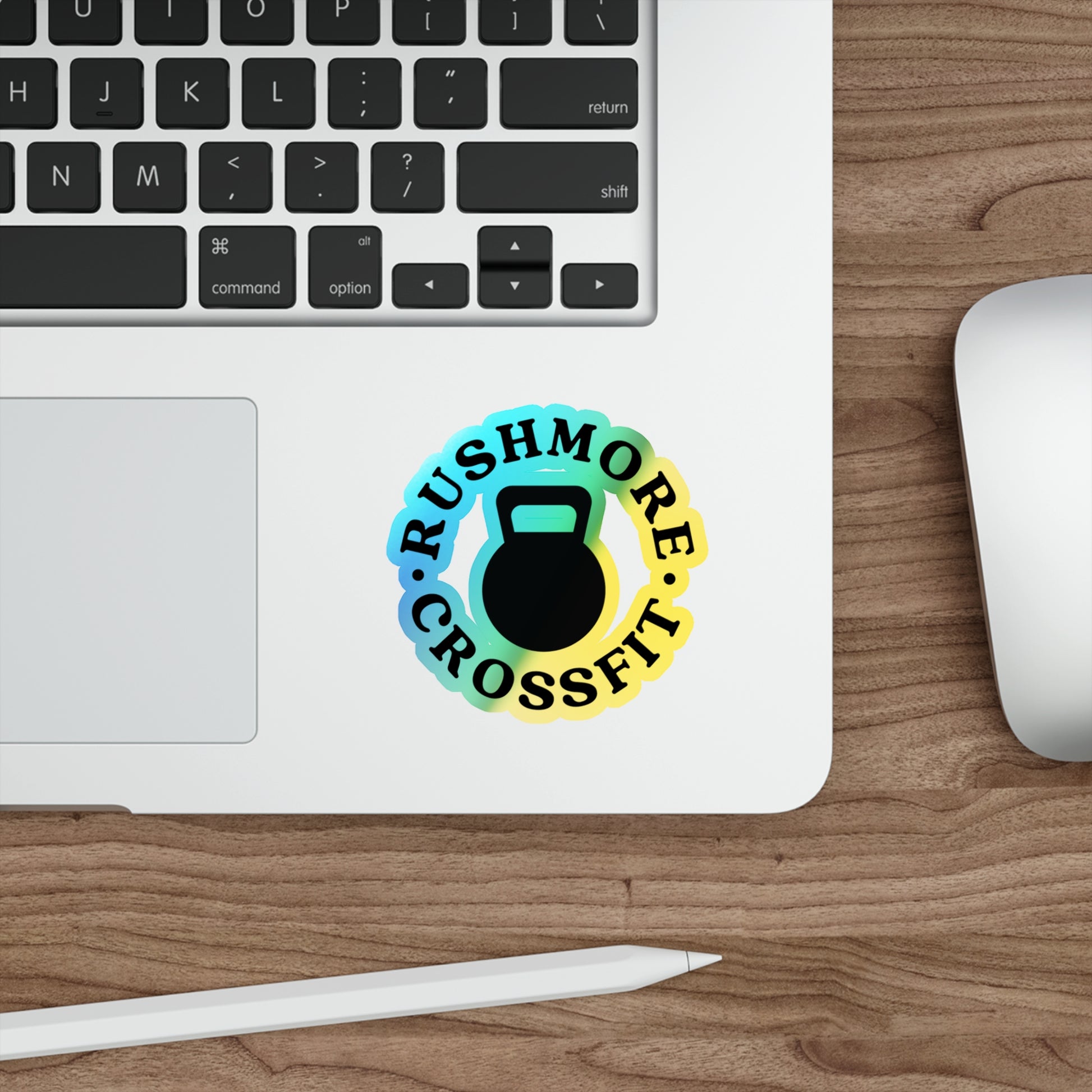 Bring some shine to your gear with the Rushmore CrossFit holographic sticker! Featuring a kettlebell encircled by the Rushmore CrossFit name, this sticker adds a unique, eye-catching touch to any surface.