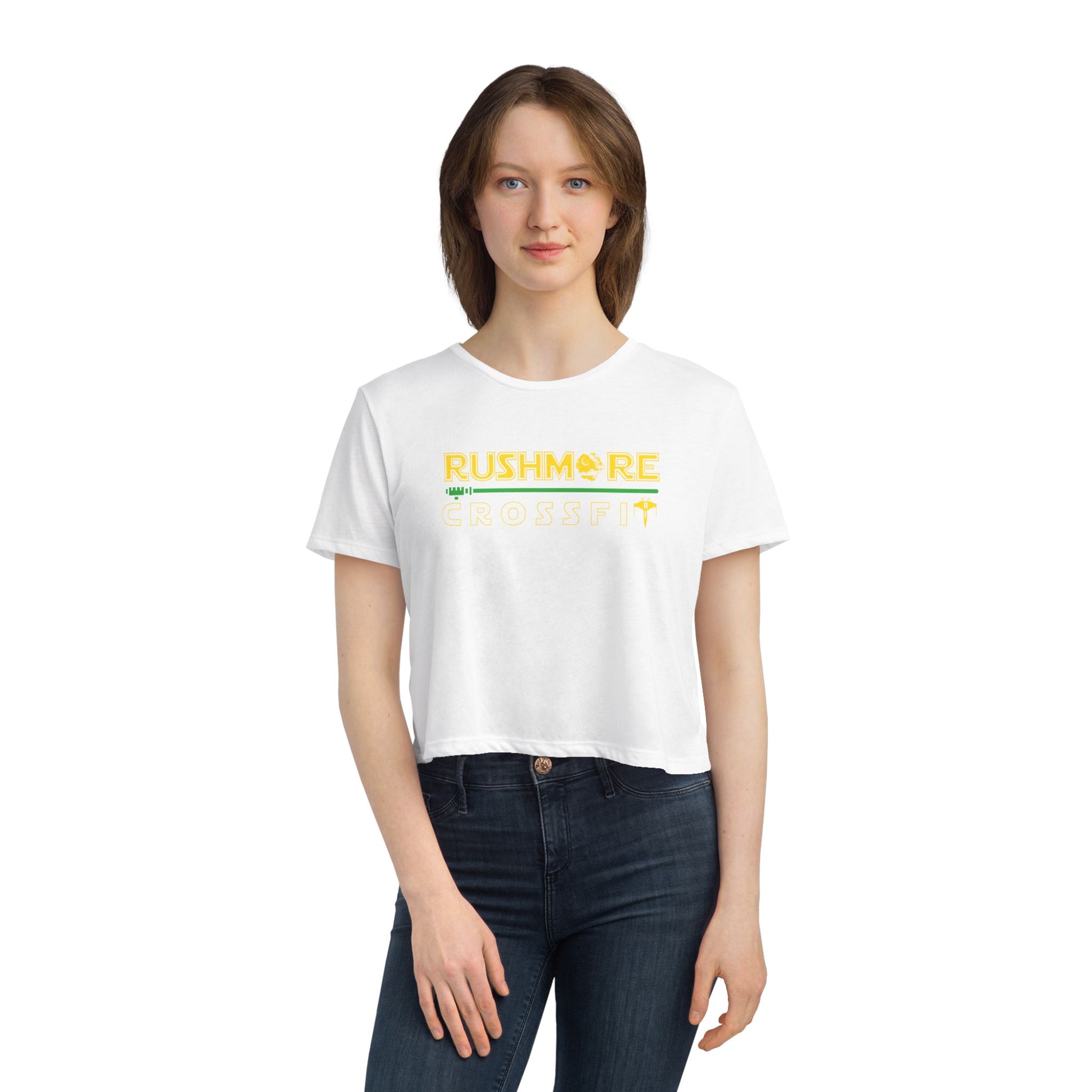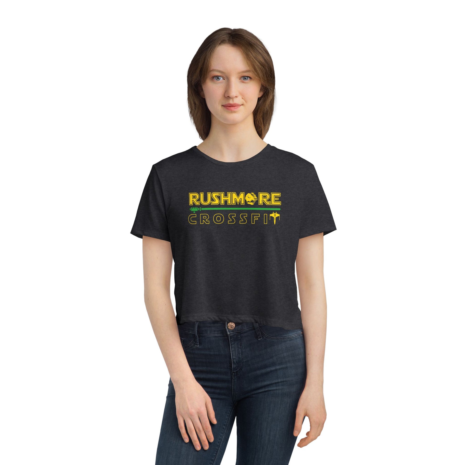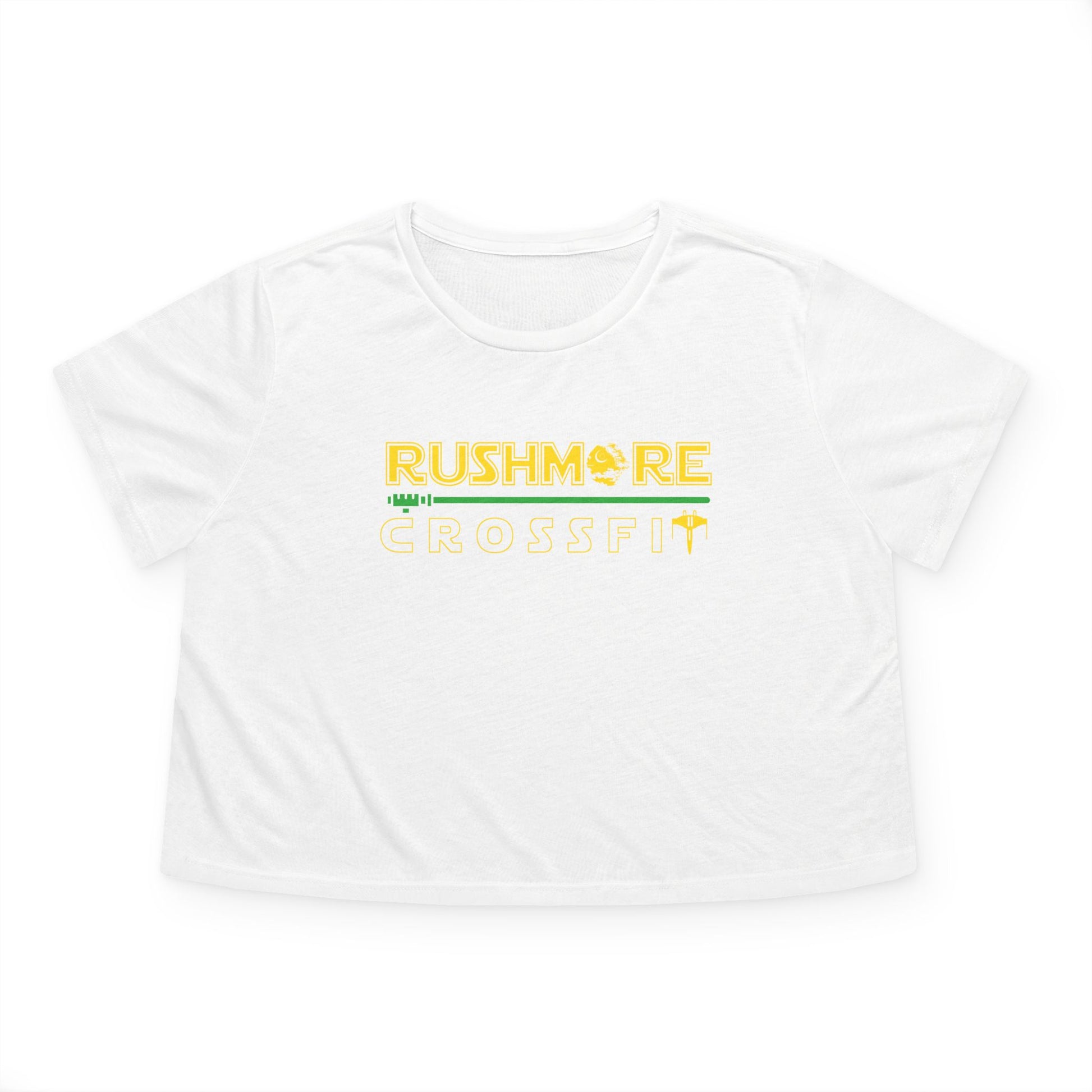 Unleash your inner rebel with the Rushmore CrossFit Galactic Crop Tee, where fitness meets the Force in a stylish, star-studded design. Featuring our gym name in a galaxy-far-away font (plus a few spaceship cameos), this ultra-light, relaxed-fit crop is perfect for sweaty sessions, rest days, or just letting the galaxy know you lift.