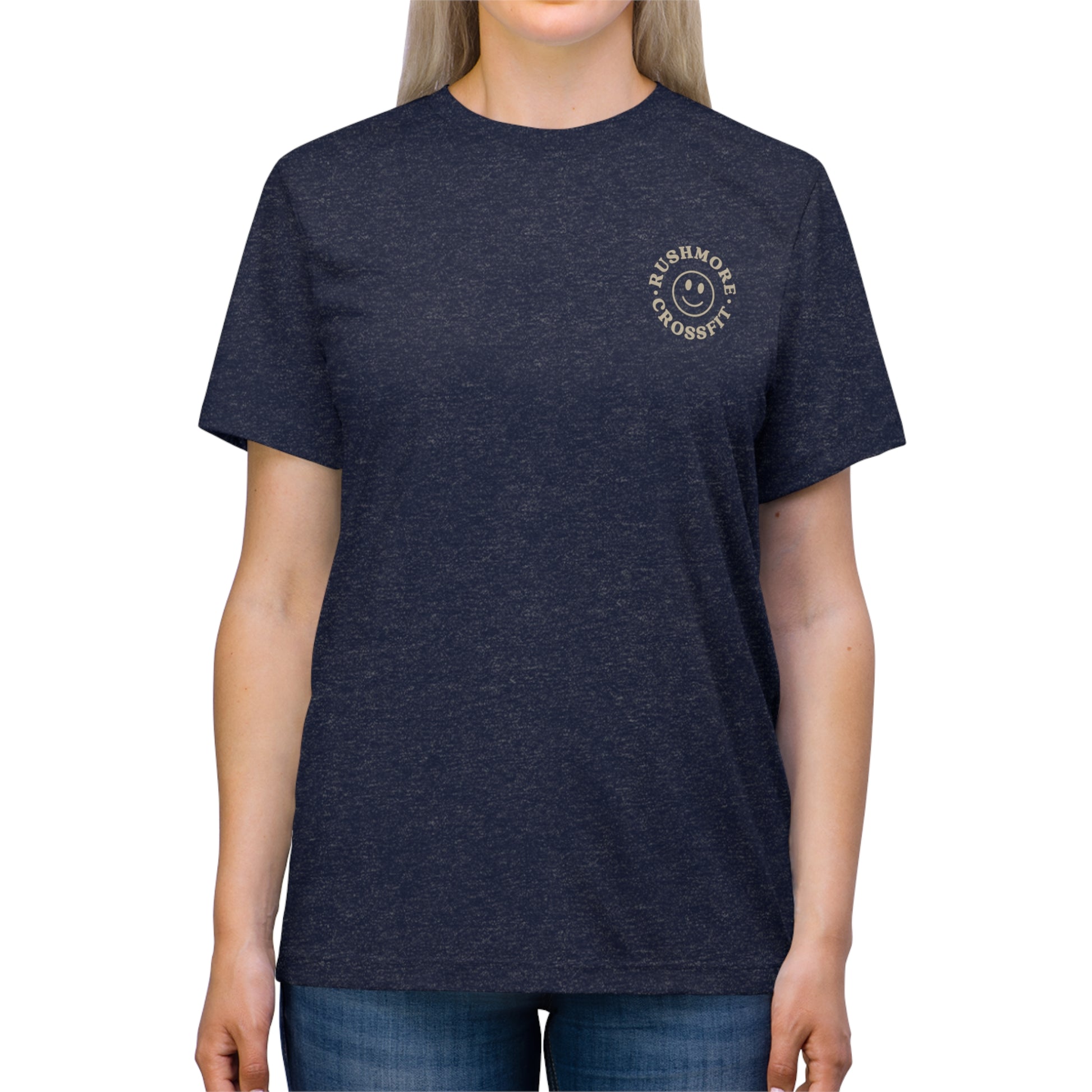Experience the perfect blend of comfort and durability with the Rushmore CrossFit "Enjoy the Journey" Triblend Tee. This unisex t-shirt features a wavy font design with "Rushmore CrossFit" on the front pocket and "Enjoy the Journey" on the back, making it an impeccable choice for both quality and style.