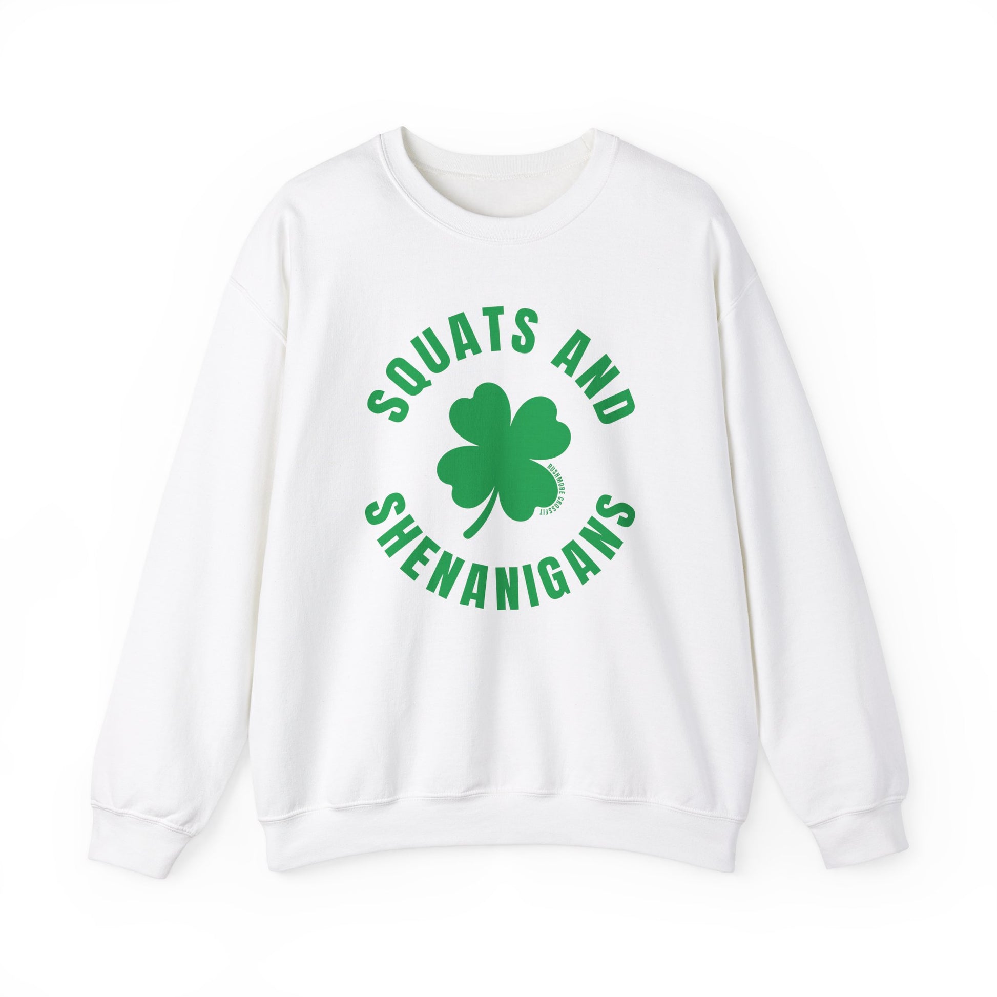 Strong legs, cozy vibes, and a little Irish luck—this sweatshirt has it all! The Squats & Shenanigans crewneck is built for comfort, whether you’re crushing workouts, hitting the town, or just kicking back with your favorite post-WOD snack. Soft, warm, and effortlessly stylish, this unisex sweatshirt is perfect for St. Patrick’s Day celebrations or any day you want to flex both your quads and your confidence.