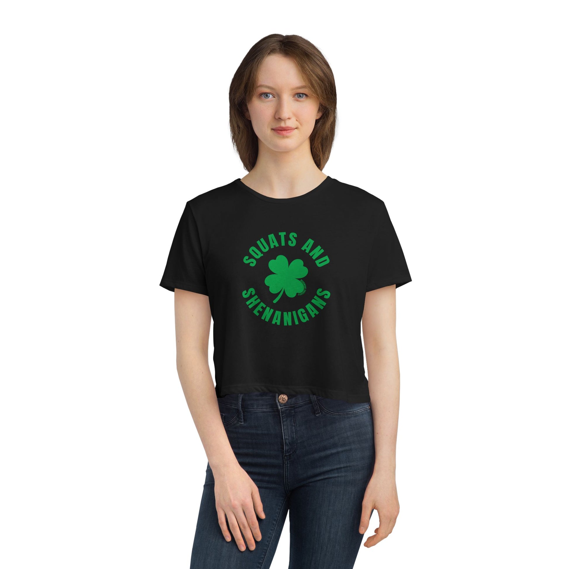 Strong legs, good vibes, and a little bit of luck—what more could you need? The Squats & Shenanigans flowy cropped tee is the ultimate combo of comfort and effortless style. With its relaxed fit, tailored sleeves, and just-right crop, this top is perfect for St. Paddy’s Day shenanigans, post-WOD hangouts, or casual outings where you want to look and feel amazing. Light, airy, and designed to flatter, it’s a must-have for anyone who loves strength, style, and a little extra luck.