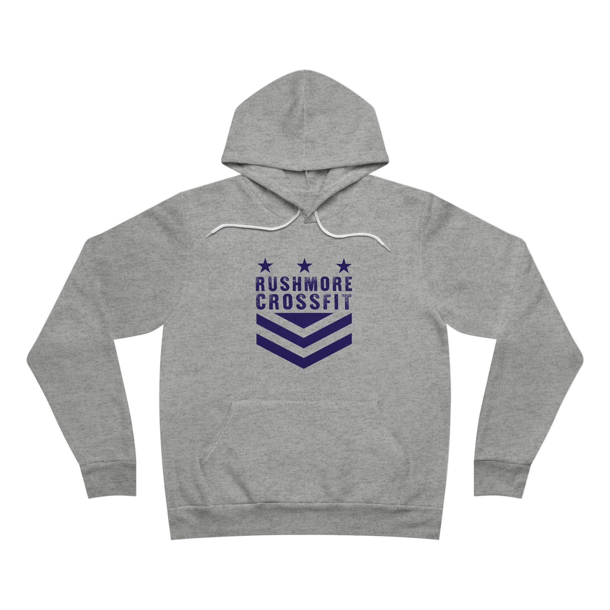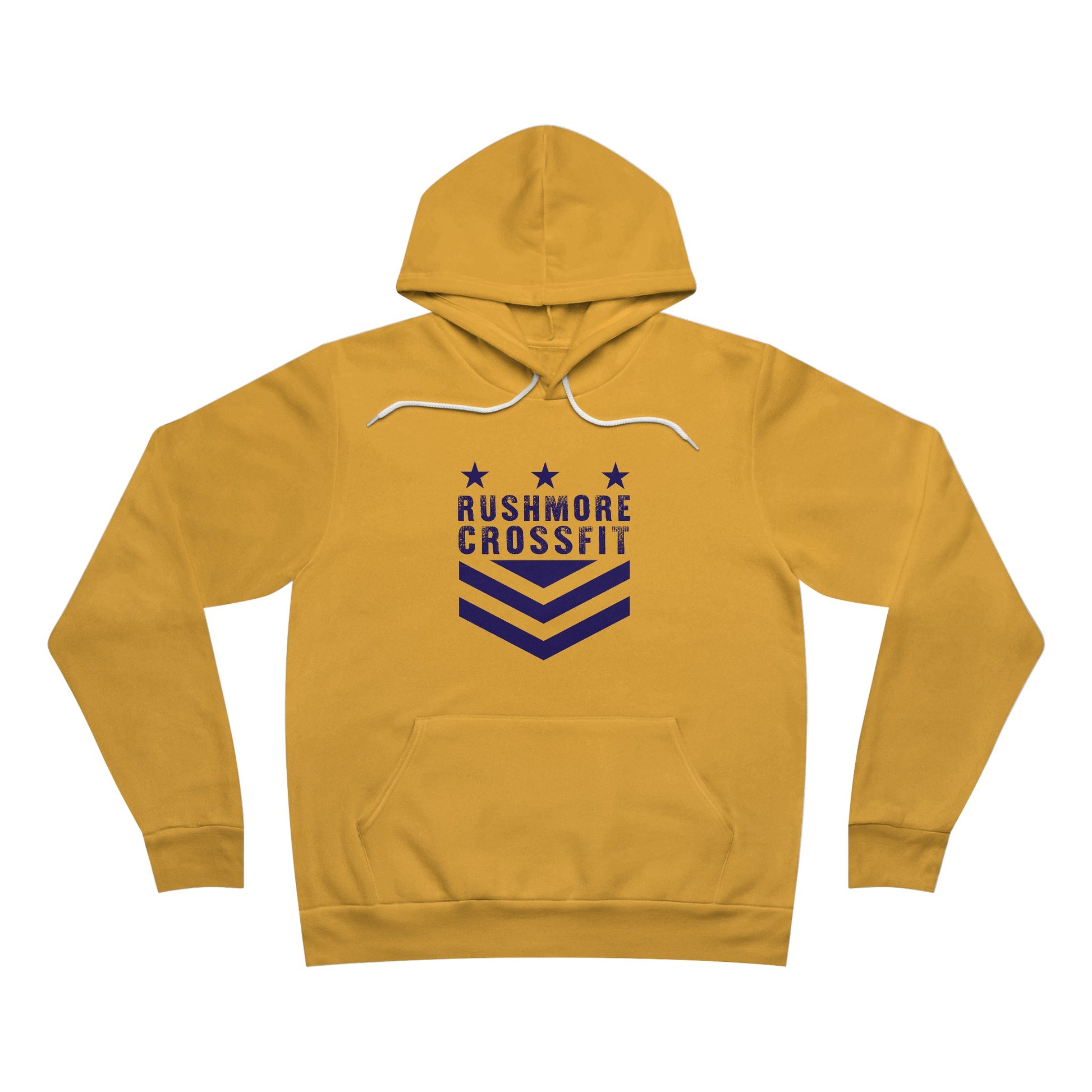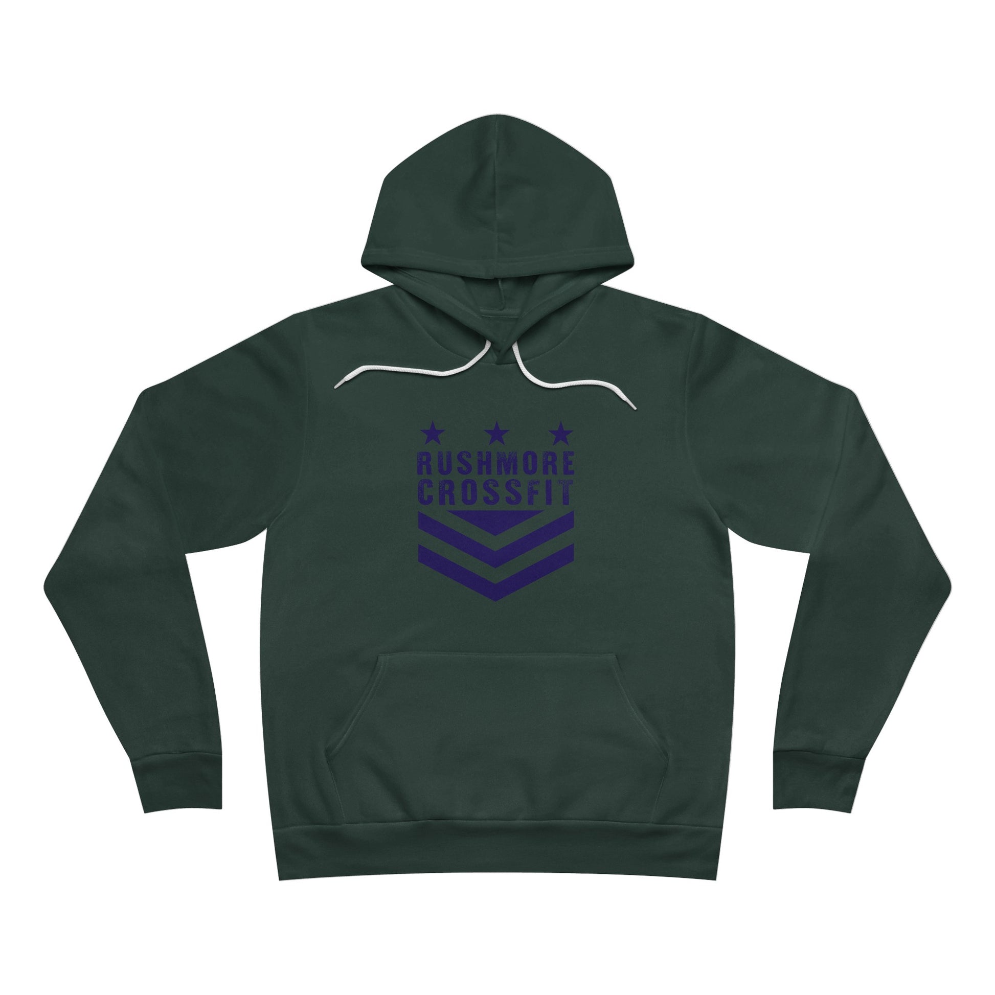 The unisex sponge fleece pullover hoodie is a blend of Airlume cotton and polyester. The percentages vary according to color. A pouch-style pocket spreads across the lower half of the garment’s front. The hood can be tightened with a white drawcord. Both cuffs and waistband have ribbing for extra grip.