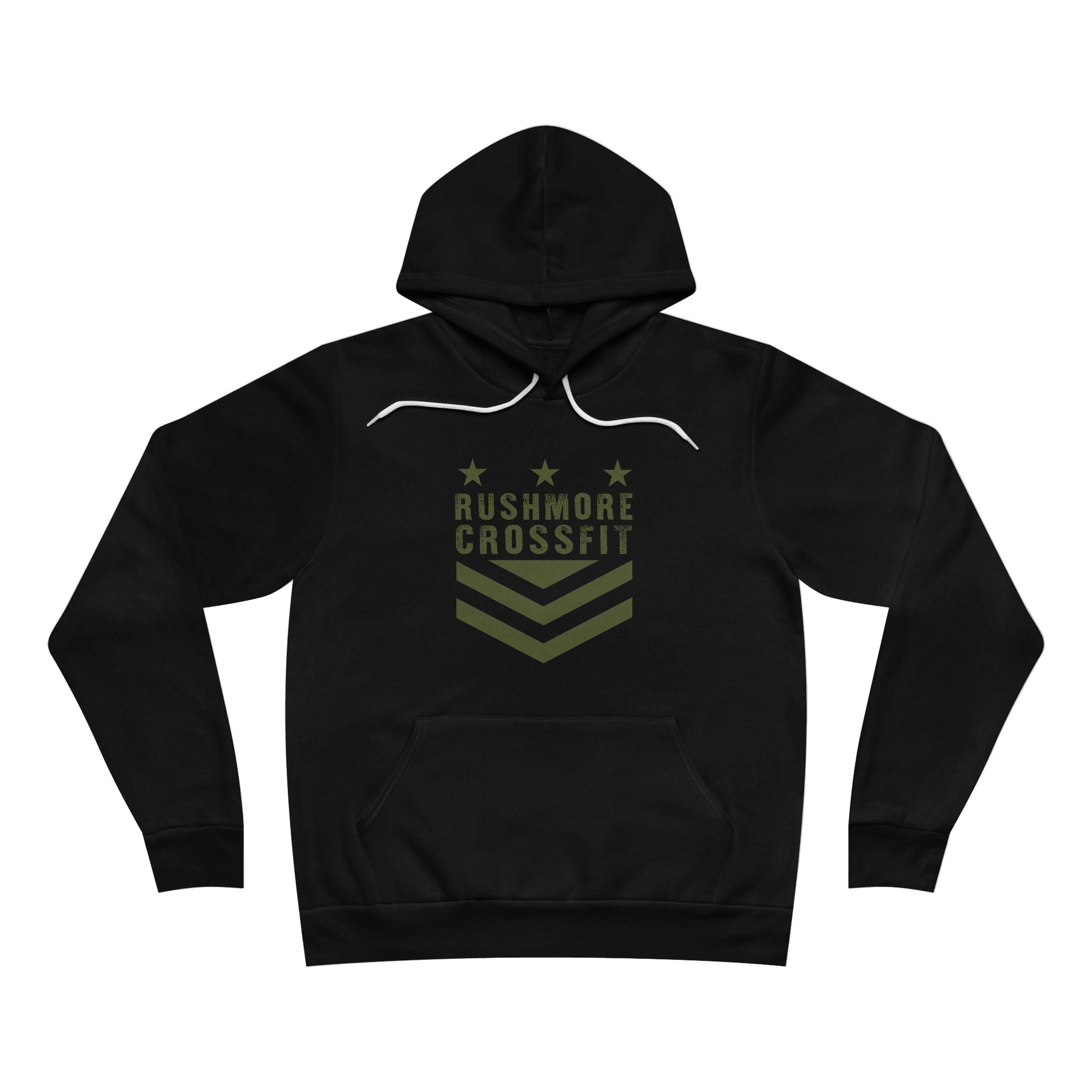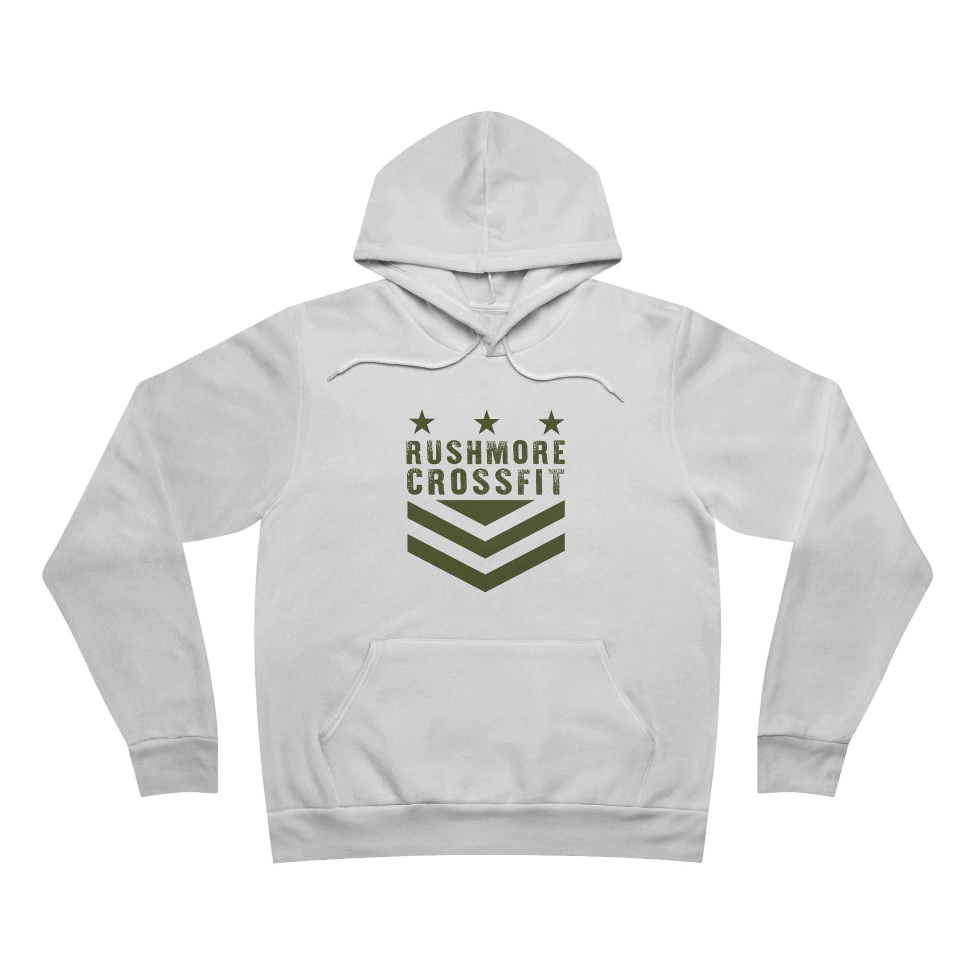 The unisex sponge fleece pullover hoodie is a blend of Airlume cotton and polyester. The percentages vary according to color. A pouch-style pocket spreads across the lower half of the garment’s front. The hood can be tightened with a white drawcord. Both cuffs and waistband have ribbing for extra grip.